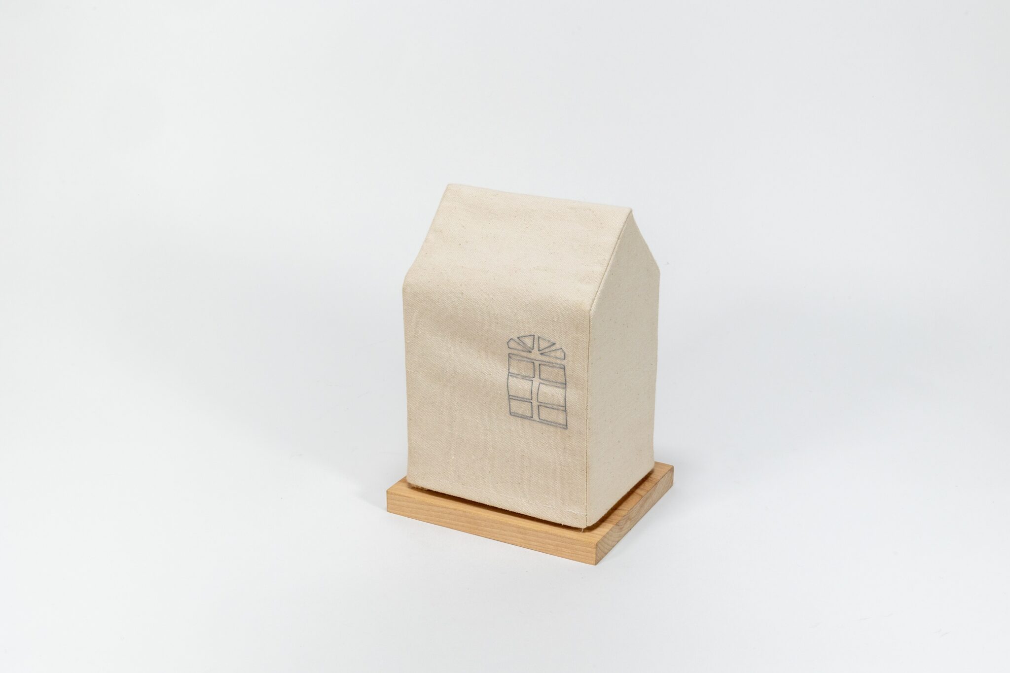 Merisier, canevas de coton, fils à broder (15 x 12,5 x 15 cm). Œuvre réalisée sous le collectif E&O, avec Olivier Roberge.